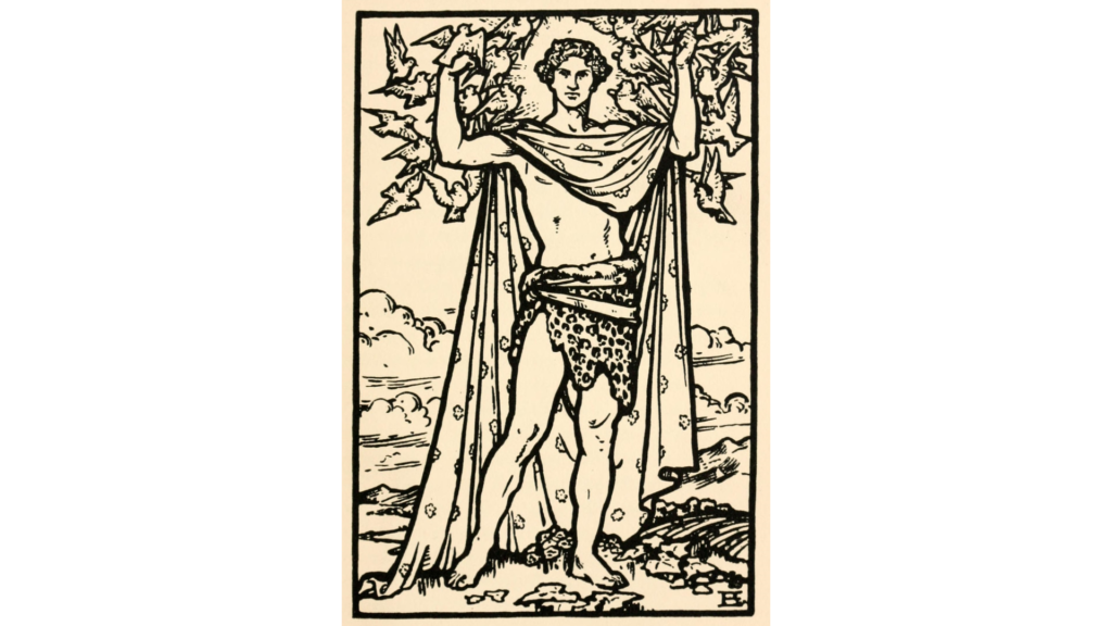 夢の中で出会った少女を、一年間探し続けた若き神アンガス。彼女はカー・イボルメス──人間と白鳥を交互に生きる運命の乙女。ケルト神話で最も美しいとされる純愛の物語と、ハシバミ(知恵)、ホーソーン(試練)、リンゴ(永遠)という三つの聖なる樹が織りなす、愛と夢の神話です。