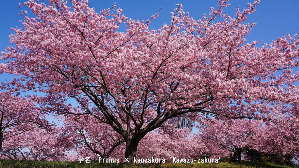 - 学名: Prunus × kanzakura ‘Kawazu-zakura’