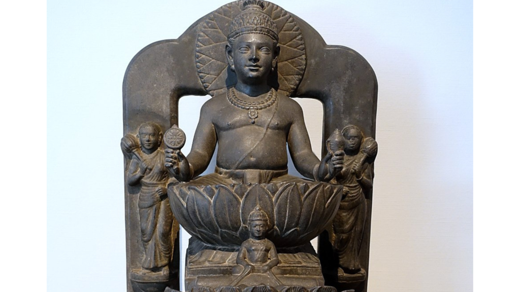 ヒンドゥー教の寺院に祀られているスーリヤ像は、完全に開いた蓮の花を握っています。これは「太陽が全宇宙に光を配っている様子」を象徴し、特に赤い蓮との深い結びつきがあります。