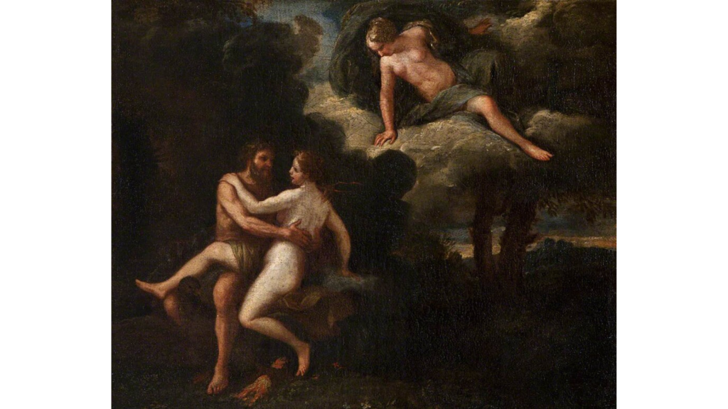 コレッジョ『ユピテルとイオ』(1530年頃): ゼウス(ユピテル)が雲の姿でイオを抱擁する、官能的な作品。